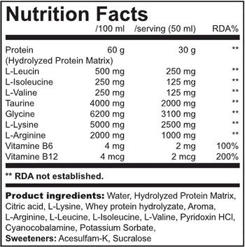 BIOTECH USA, είναι εμπλουτισμένη με γλυκίνη και λυσίνη, οι οποίες ενισχύουν τη δομή των συνδετικών ιστών και προωθούν την σωστή λειτουργία των κυττάρων. Η περιεκτικότητα του σε αργινίνη, ενισχύει το ανοσοποιητικό σύστημα και διεγείρει την παραγωγή των αυξητικών ορμονών, και υποστηρίζει την φυσική δραστηριότητα.