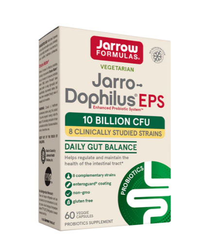 Το JarroDophilus EPS της JARROW FORMULAS παραδίδει και εξασφαλίζει έναν μέγιστο αριθμό των κυττάρων στο γαστρεντερικό σωλήνα. Τα στελέχη που περιέχονται στο προϊόν είναι ανέπαφα ( Lactobacillus, Bifidobacterium, Lactococcus και Pediococcus). Κάθε ένα από αυτά παίζουν καθοριστικό ρόλο στην ομαλοποίηση της βακτηριακής ισορροπίας και της σωστής λειτουργία του οργανισμού.