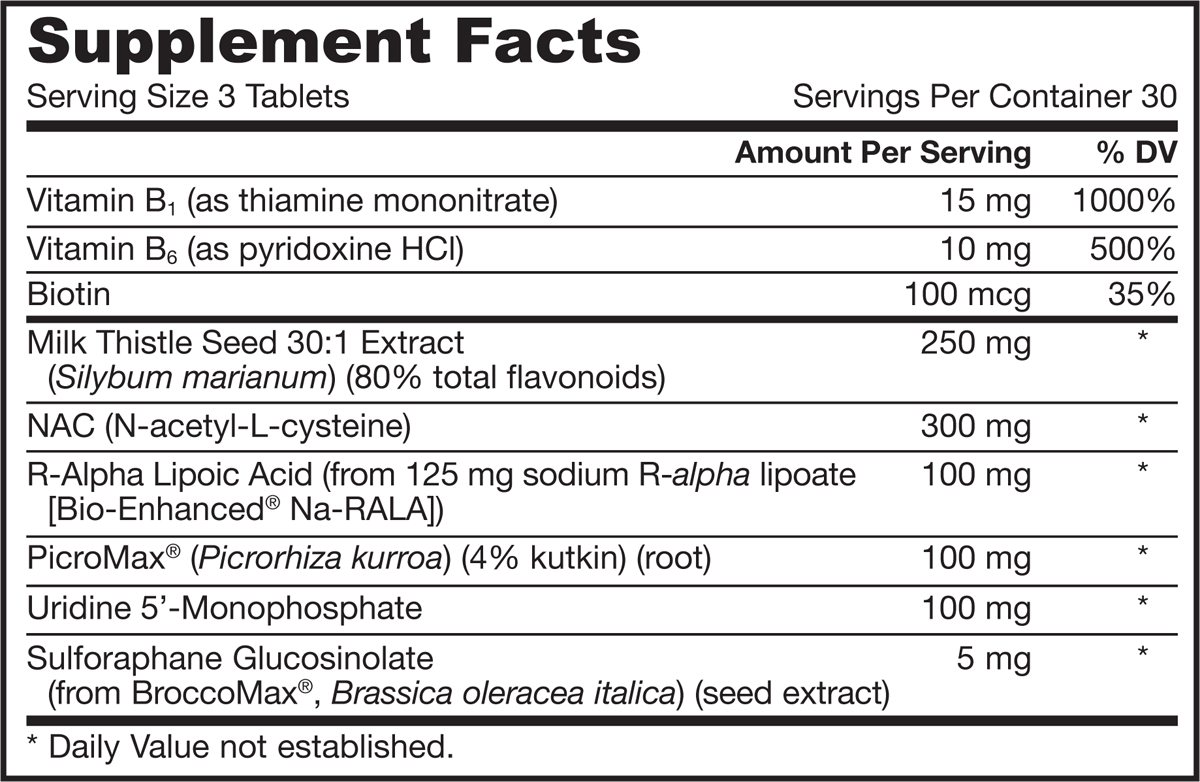 Το προϊόν περιέχει ένα απόσπασμα από το γάλα γαϊδουράγκαθου (Silybum marianum), το οποίο είναι διάσημο για την ευνοϊκή επίδραση του στο ήπαρ. Είναι τυποποιημένο σε αναλογία 30: 1, έχει μια επίδραση στην παραγωγή της γλουταθειόνης και συμβάλλει στην προώθηση της ανανέωσης των κυττάρων του ήπατος.