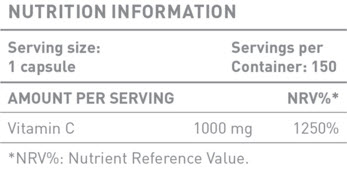 Battery Nutrition παρέχει 1000 mg βιταμίνης C σε μία κάψουλα. Αυτή η βιταμίνη ενισχύει τις φυσικές άμυνες του σώματος και βοηθάει στην καταπολέμηση λοιμώξεων και κρυολογήματος. Η βιταμίνη C είναι ένα ισχυρό αντιοξειδωτικό που σταματά τις επιβλαβείς επιδράσεις των ελεύθερων ριζών. Ενισχύει τα οστά, τους χόνδρους και τα δόντια, διεγείρει την εγκεφαλική δραστηριότητα, αυξάνει τα επίπεδα ενέργειας και μειώνει την κόπωση. Αυτή η θρεπτική ουσία βοηθά στην αποκατάσταση μετά από ασθένεια, επιταχύνει την επούλωση πληγών και προάγει τη μυϊκή λειτουργία. Παρέχει πολύτιμη υποστήριξη στην υγεία της καρδιάς, ενισχύοντας τα τοιχώματα των αιμοφόρων αγγείων και βοηθώντας στην πήξη του αίματος.
