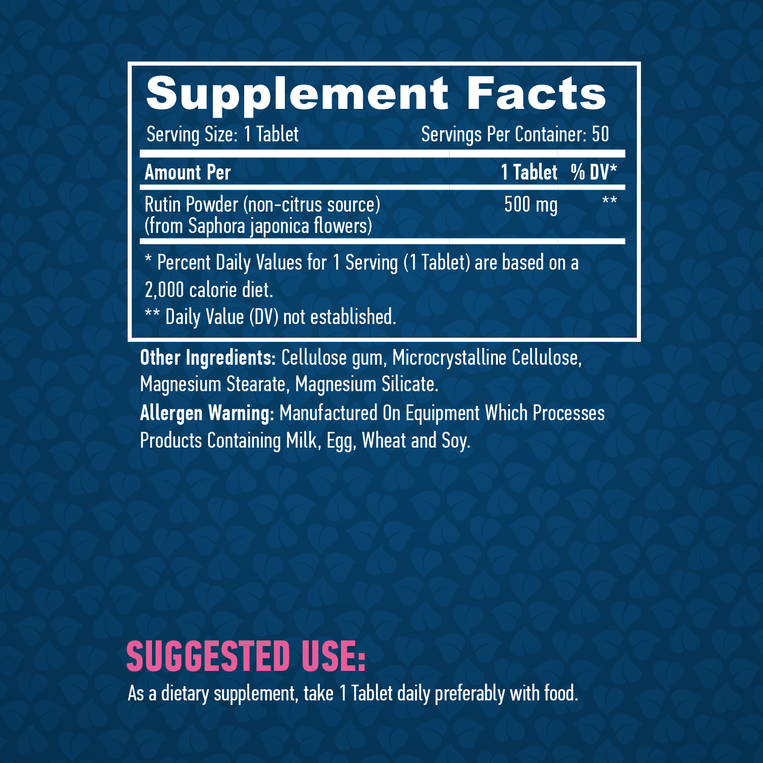 Το Rutin της Haya Labs παρέχει σημαντικά βιοφλαβονοειδή τα οποία δεν βρίσκονται στα κιτροειδή φρούτα. Προάγει τη λειτουργία του κυκλοφορικού συστήματος, προλαμβάνει την ευθραυστότητα των τριχοειδών αγγείων και γι’ αυτό το λόγο είναι χρήσιμη σε άτομα που παρουσιάζουν εύκολα μώλωπες. Χρήσιμη σε περιπτώσεις κιρσωδών φλεβών, ουλίτιδας και περιοδοντίτιδας.