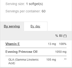 Το Prozis Evening Primrose περιέχει GLA (γάμμα-λινολενικό οξύ) αλλά αυτό δεν είναι όλα: η συνιστώμενη ημερήσια δόση Prozis Evening Primrose σας παρέχει 39 mg βιταμίνης Ε. Αυτή η θρεπτική ουσία συμβάλλει στην προστασία των κυττάρων από το οξειδωτικό στρες.