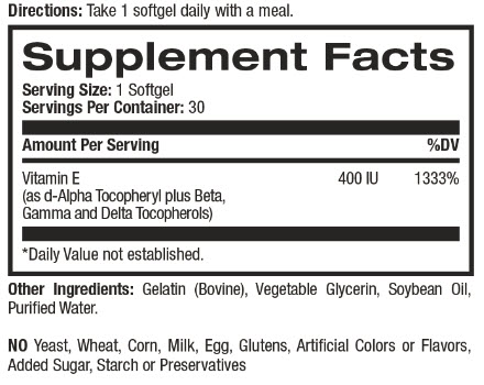 Το Natrol-Vitamin E 400IU ενισχύει το ανοσοποιητικό σύστημα και προάγει τη λειτουργία του εγκεφάλου.