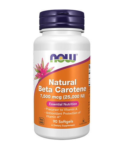 To Beta Carotene natural της NOW περιέχει επιπλέον αντιοξειδωτικά καροτενοειδή, Άλφα καροτίνη, ζεαξανθίνη, κρυπτοξανθίνη και λουτεϊνη, τα οποία βρίσκονται και στα θαλάσσια φύκια D salina. Η φυσική ισορροπία των σχετικών καροτενοειδών είναι αυτό που κάνει το προϊόν πιο βιοδιαθέσιμο σε σύγκριση με την κοινή συνθετική Βήτα καροτίνη. Το Beta Carotene natural της NOW είναι λιποδιαλυτή πηγή τροφής των προ βιταμινών Α.