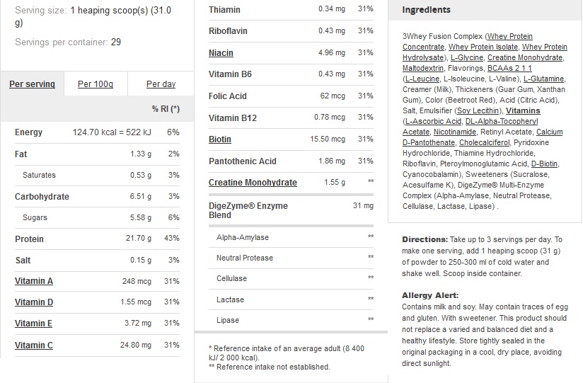 Το Prozis Whey Protein Fusion είναι ένα πλήρες, all-in-one συμπλήρωμα! Αυτή η έξοχη σύντηξη θα διαδραματίσει βασικό ρόλο με την απελευθέρωση βασικών αμινοξέων σε διάφορα στάδια, και έρχεται σε πολλές υπέροχες γεύσεις.