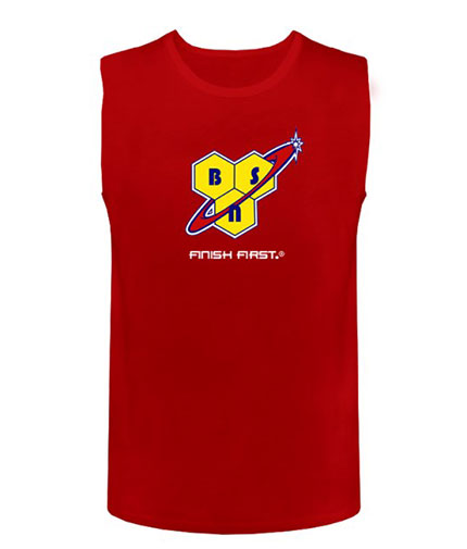 Το Running Vest της BSN είναι ένα βαμβακερό αμάνικό μπλουζάκι με το λογότυπο της εταιρίας, σε φανταχτερό κόκκινο χρώμα.