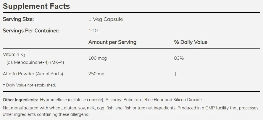 Το συμπλήρωμα περιέχει μια εξαιρετικά ισχυρή μορφή βιταμίνης Κ για την καλύτερη απορρόφηση του ανθρώπινου σώματος.