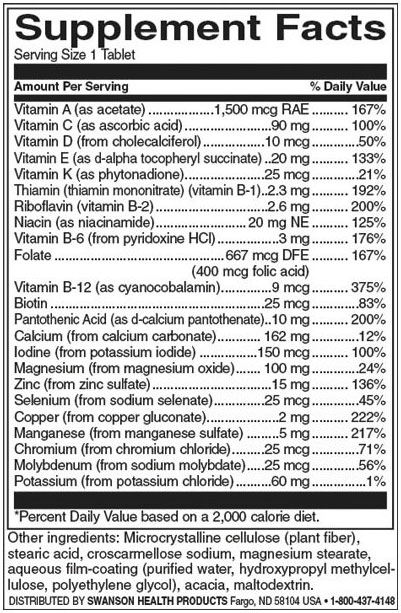 Συστατικά: βιταμίνη Α, βιταμίνη C, βιταμίνη D, βιταμίνη Ε, βιταμίνη Κ, θειαμίνη, ριβοφλαβίνη, ασβέστιο, χαλκός, ιώδιο, βιταμίνη Β12, ψευδάργυρος, μαγγάνιο, κάλιο, χρώμιο, μολυβδαίνιο, φολικό DFE