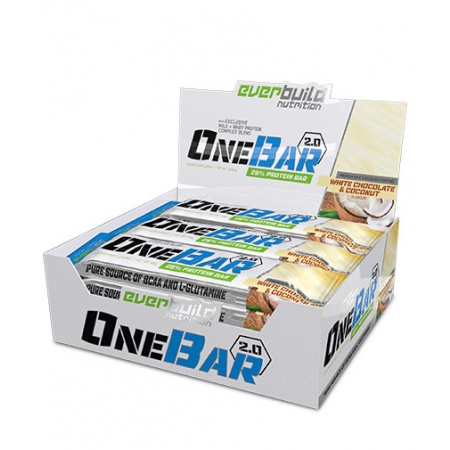 Το One Bar 2.0 από την Everbuild Nutriton είναι μία εξαιρετικά νόστιμη μπάρα πρωτεΐνης, η οποία δημιουργήθηκε με μια πρωτοποριακή φόρμουλα με τα υψηλότερα συστατικά της κατηγορίας!