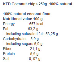 Συστατικά: καρύδα, πρωτεΐνες, ίνες