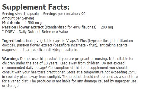 Συστατικά: ινσουλίνη, φυτικό καψάκιο Vcaps® Plus (υπρομελλόζη, μήτρα: διοξείδιο του τιτανίου), εκχύλισμα λουλουδιών πάθους (passiflora incarnata - φρούτα), αντιδραστήρια: στεατικό μαγνήσιο, διοξείδιο του πυριτίου. μελατονίνη.