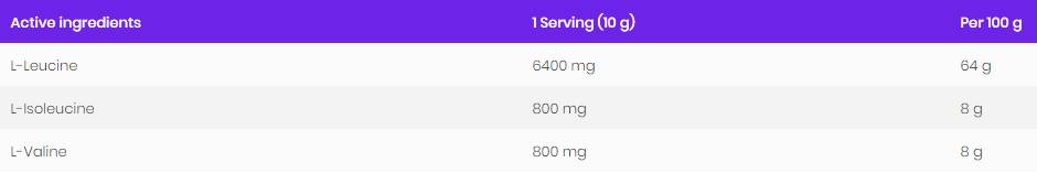 Συστατικά: L-λευκίνη, L-βαλίνη, L-ισολευκίνη