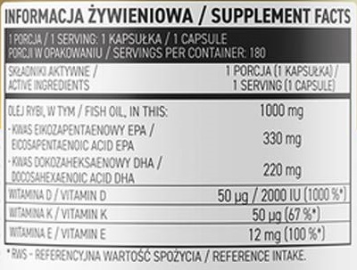 Το OstroVit Omega 3 / D3 + K2 είναι ένας συνδυασμός ωμέγα-3 λιπαρών οξέων με βιταμίνες D3, K2 και E.