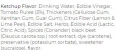 mustard: water, vinegar, salt, thickeners (cellulose gum, xanthangum, guar gum), citrus fibre (from lemon and lime peel), modifiedpotato starch, free-range egg yolks, mustard [ground mustard seed,vinegar, salt, flavouring, antioxidant (sodium metabisulphite)], acid(citric acid), herbs, spices, colours (titanium dioxide, carotenes),preservatives (potassium sorbate, sodium benzoate), sweeteners(sucralose, saccharins), flavouring, antioxidant (calcium disodiumEDTA).