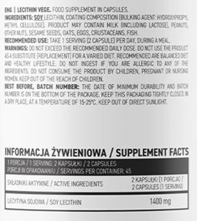 Το OstroVit Lecithin 700 mg / Vege είναι ένα συμπλήρωμα διατροφής σε vegan κάψουλες που περιέχουν λεκιθίνη σόγιας.