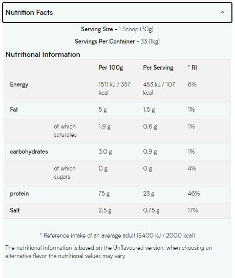 Είναι μια σκόνη πρωτεΐνης που προέρχεται από 100% απομόνωση πρωτεΐνης μπιζελιού - χωρίς καμία προσθήκη ή λήψη.