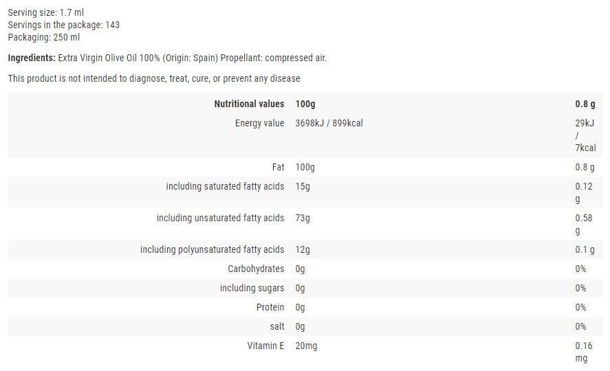 Cooking Spray / Extra Virgin Olive Oil / 250 ml
