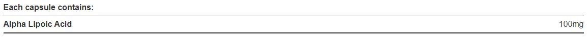 Οι κάψουλες Holland & Barrett Alpha Lipoic Acid περιέχουν Άλφα Λιποϊκό Οξύ (ALA). Το ALA είναι ένα ισχυρό αντιοξειδωτικό που παίζει ουσιαστικό ρόλο στο μεταβολισμό των μακροθρεπτικών συστατικών.