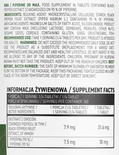 ΥΨΗΛΗ ΠΕΡΙΕΚΤΙΚΟΤΗΤΑ ΠΙΠΕΡΙΝΗΣ - Χάρη στην υψηλή περιεκτικότητα πιπερίνης στο εκχύλισμα, έως και 95%, το συμπλήρωμα αποδεικνύεται εξαιρετικά αποτελεσματικό.