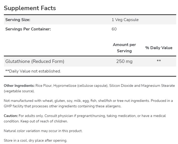 Τι είναι το Glutathione 250mg 60 VCaps της NOW?