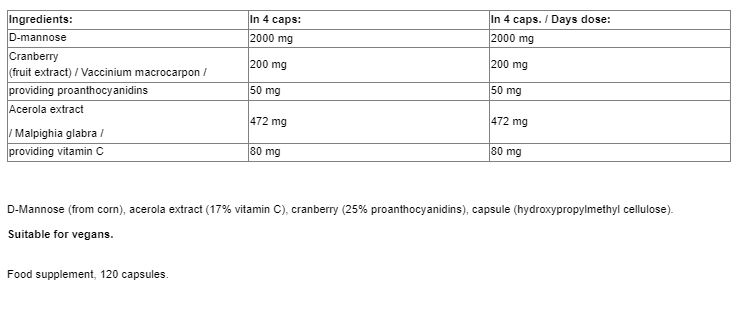 D-Mannose Complex with Cranberry + Acerola / 120 Caps