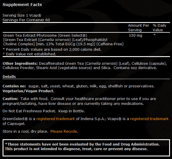 Το TLean Weight Management 60 VCaps της NOW έχει υψηλή αντιοξειδωτική και θερμογενετική δράση. Τα φλαβονοειδή του πράσινου τσαγιού είναι εξαιρετικά χρήσιμα και έχουν αντιοξειδωτικές ιδιότητες. Αυτό το προιόν περιέχει μία ειδικά πατενταρισμένη φόρμουλα εξόρυξης του πράσινου τσαγιού χωρίς καφεΐνη. Κατοχυρωμένο με δίπλωμα ευρεσιτεχνίας και κλινικά ελεγμένο εκχύλισμα που ονομάζεται GreenSelect® Phytosome. Εκεί προστέθηκαν φωσφολιπίδια, τα οποία παρέχουν υψηλή βιοδιαθεσιμότητα στο ανθρώπινο σώμα.