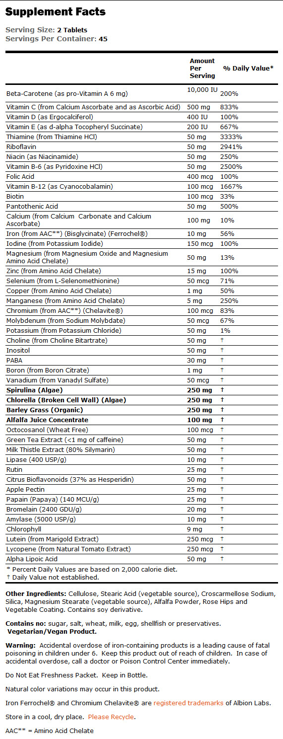 Η έλλειψη έστω και ενός από αυτές τις απαραίτητες βιταμίνες και ανόργανα συστατικά στον οργανισμό, οδηγούν σε μεταβολικές διαταραχές. Αυτό το σκεύασμα παρέχει τη μέγιστη απόδοση από τις λειτουργίες του σώματός μας, και εξαφανίζει τα προβλήματα που οδηγούν σε μείωση της συνολικής μας καλής φυσικής κατάστασης.Οι πολυβιταμίνες μπορεί να εμπλουτίσουν και να βελτιώσουν τη διατροφή μας κατά τεράστιο βαθμό. Η φόρμουλα αυτή παρέχει ένα ευρύ φάσμα των θρεπτικών ουσιών που έχουν μια συνεργική επίδραση.