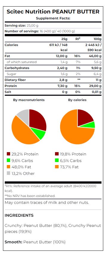 Το φυστικοβούτυρο Scitec περιέχει ΜΟΝΟ φιστίκια και φυστικοβούτυρο - χωρίς προσθήκη ζάχαρης, χωρίς συντηρητικά, χωρίς περιττά πρόσθετα!
