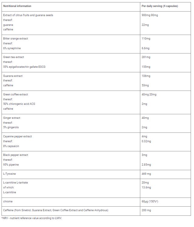 241 mg εκχύλισμα γκουαρανά (22% καφεΐνη)