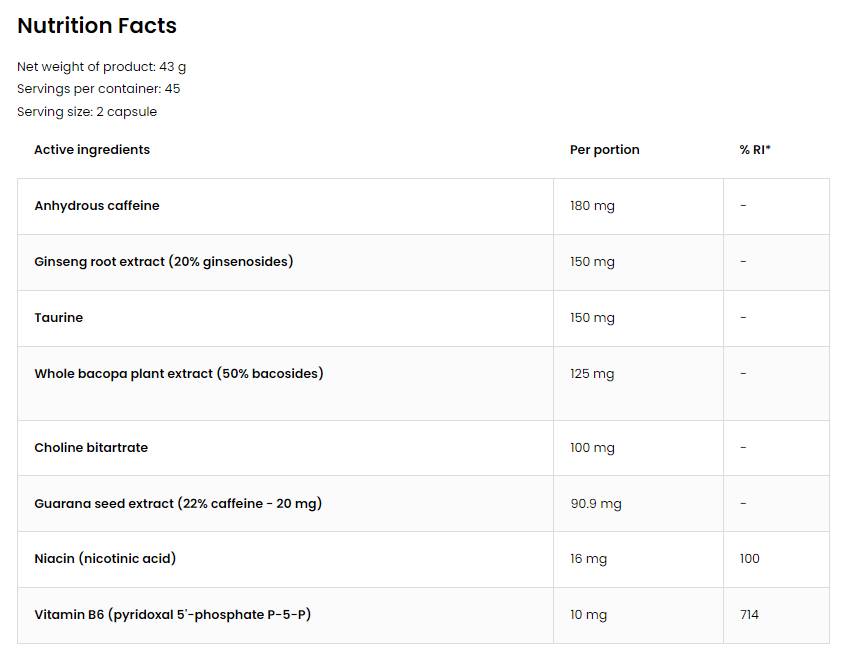 Ιδιότητες των συστατικών που περιέχονται στο OstroVit Braintus Thunder: