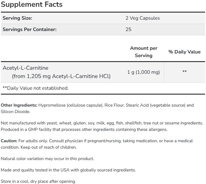 Η Ακετυλ L-καρνιτίνη είναι η πιο αποτελεσματική μορφή L-καρνιτίνης, εξασφαλίζοντας έτσι εξαιρετικά ταχεία και πλήρη απορρόφηση του δραστικού συστατικού - κάτι πολύ σημαντικό για να είναι η L-καρνιτίνηαποτελεσματική. Για μέγιστο αποτέλεσμα, συνδυάστε Acetyl L-Carnitine με δίαιτα και αερόβια σωματική δραστηριότητα - ποδήλατο γυμναστικής, τρέξιμο, γρήγορο περπάτημα ή σχοινάκι,.