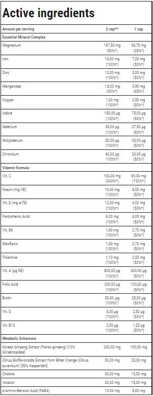Σύμπλεγμα πολυβιταμινών από την TREC NUTRITION, ειδικά σχεδιασμένο για να προσφέρει πνευματική διαύγεια και ενεργοποίηση του μεταβολισμού καθ' όλη τη διάρκεια της ημέρας.
