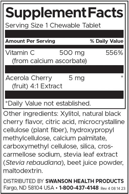 Σχετικά με το SWANSON Chewable Vitamin C - Natural Cherry Flavor Sugar-Free / 60 Chews: