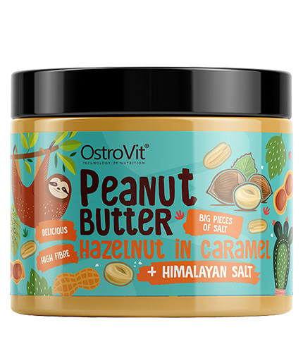 Το OSTROVIT PHARMA Peanut Butter with Hazelnut in Caramel + Himalayan Salt | Crunchy (φυστικοβούτυρο και φουντούκι σε καραμέλα και αλάτι Ιμαλαΐων) είναι μια πλούσια πηγή πολύτιμων λιπαρών οξέων, πρωτεϊνών, φυτικών ινών και μετάλλων.