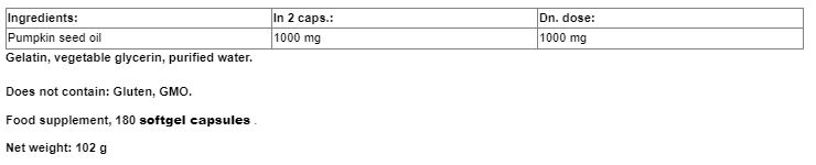 • Οι μαλακές γέλη Pumpkin Seed Oil κατασκευάζονται / δοκιμάζονται στις ΗΠΑ, χωρίς γλουτένη, ασφαλή για vegan και δεν είναι ΓΤΟ