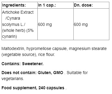 600 mg εκχυλίσματος αγκινάρας ανά κάψουλα