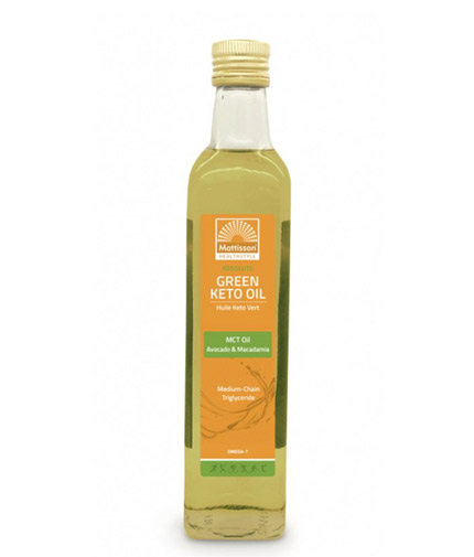 Το MATTISSON Green Keto Oil - MCT, Avocado & Macadamia / 500 ml είναι ένα μείγμα ελαίου MCT C8/C10 με Avocado, Macadamia και lime oil. Το αβοκάντο και η μακαντάμια είναι και τα δύο πλούσια σε ωμέγα 7 λιπαρό οξύ παλμιτολεϊκό οξύ, το οποίο παίζει ρόλο στον μεταβολισμό του λίπους μας.