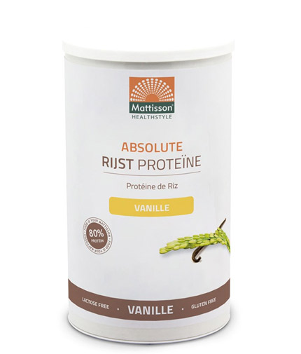 Το συμπλήρωμα διατροφής Mattisson Healthstyle Absolute Rice Protein περιέχει σκόνη πρωτεΐνης ρυζιού, η οποία παράγεται από βλαστημένο καστανό ρύζι. Παρέχει υψηλές δόσεις πρωτεΐνης στον οργανισμό και είναι πηγή όλων των σημαντικών αμινοξέων, βιταμινών και μετάλλων. Το προϊόν προάγει την αύξηση της μυϊκής μάζας και παράγεται μέσω μιας διαδικασίας που διασφαλίζει ότι η τελική πρωτεΐνη είναι υψηλής ποιότητας και χαμηλή σε υδατάνθρακες και λίπη.