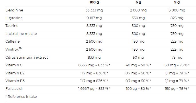 Καφεΐνη, Τυροσίνη, Αργινίνη, Συννεφρίνη, Ταυρίνη