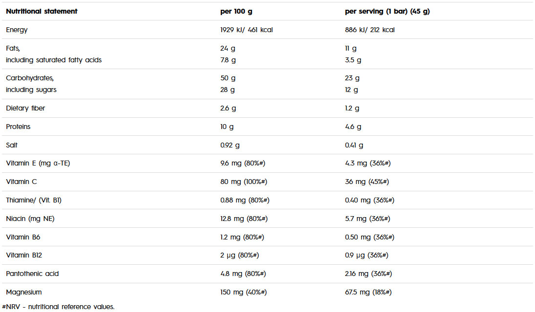 Μερίδες ανά συσκευασία: 20 μπάρες των 45 g