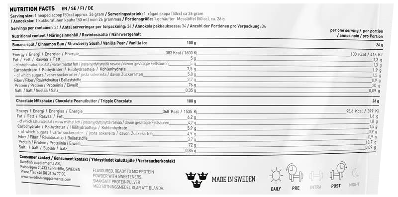 Εκτός από την εκπληκτική γευστική εμπειρία, το περιεχόμενο είναι επίσης πολύ προσιτό με 33 μερίδες ανά συσκευασία και περιεκτικότητα σε πρωτεΐνη περίπου 75%. Η πρωτεΐνη ορού γάλακτος SWEDISH SUPPLEMENTS Lifestyle Whey έχει πλήρη περιεκτικότητα σε ζωτικά αμινοξέα και φυσικά υψηλή περιεκτικότητα σε διακλαδισμένα αμινοξέα που δομούν τους μυς. Η υψηλή ποιότητα του ορού γάλακτος το καθιστά μια από τις πιο σημαντικές ποικιλίες πρωτεΐνης όταν πρόκειται για τη μεγιστοποίηση της οικοδόμησης μυών.