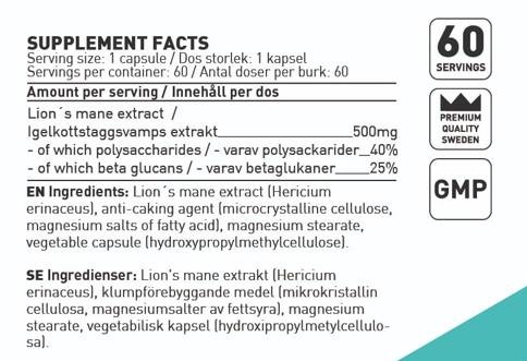 SWEDISH SUPPLEMENTS Lion's Mane 500 / 60 Caps