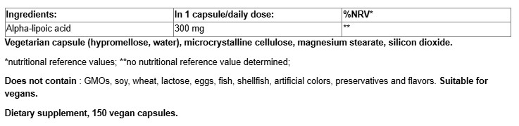 Alpha-Lipoic Acid 300 mg / 150 Vcaps