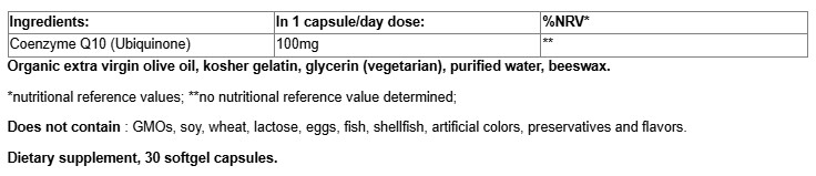 Coenzyme Q10 (Ubiquinone) 100 mg / 30 Softgels