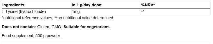 HAYA LABS L-Lysine 500mg. / 100 Vcaps.