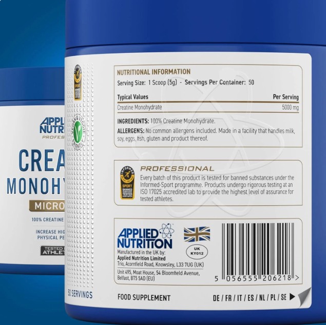 Η κρεατίνη της Applied Nutrition παρέχει την πιο εύκολα απορροφήσιμη φόρμουλα μονοϋδρικής κρεατίνης που είναι διαθέσιμη. Είναι επίσης πιστοποιημένο για το Informed Sport και ελεγμένο παρτίδας για απαγορευμένες ουσίες διασφαλίζοντας την ποιότητά του.