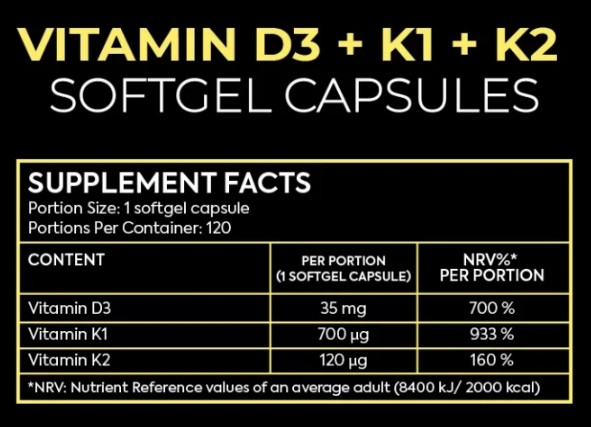 Vitamin D3 + K1 + K2 / 120 Softgels
