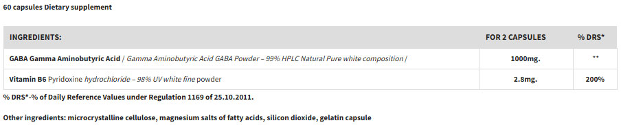 GABA 99% + B6 HCL / 60 Caps