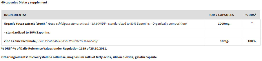 GREWIA Organic Yucca 80% Saponins (Zn) / 60 Caps