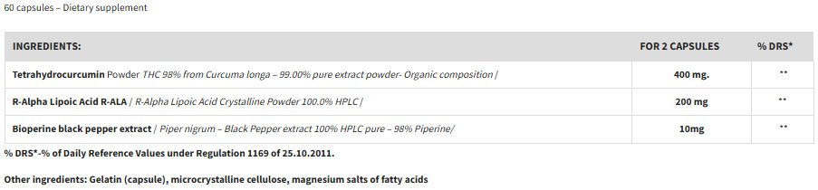 Tetrahydrocurcumin THC / R-ALA / 60 Caps